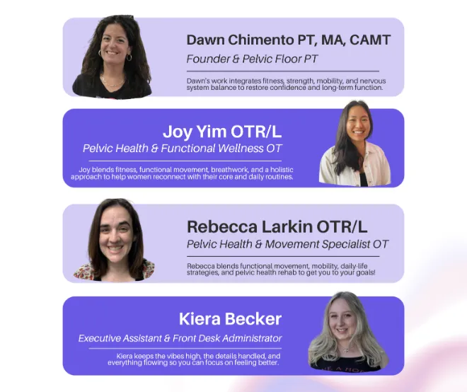 I cannot speak highly enough of my experience with Dawn Chimento’s pelvic physical therapy practice. From the moment I walked in, I felt welcomed, heard, and completely at ease. Dawn brings an exceptional level of knowledge, compassion, and professionalism to her work, making what can be a sensitive topic feel completely comfortable and empowering.